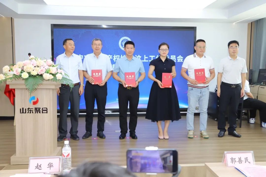 7月13日上午濟寧市知識產權協會汶上工作委員會在山東聚合管業有限公司會議室舉行揭牌儀式,濟寧市知識產權協會執行會長、濟寧市市場監管局四級調研員郭善民、汶上縣市場監督管理局局長趙華、中共康驛鎮黨委書記胡理平、汶上縣市場監督管理局二級主辦王建、國家知識產權局商標局濟寧商標注冊窗口負責人王敦榮、濟寧市名優品牌管理中心主任、濟寧市知識產權協會秘書長周長學等出席活動,濟寧市知識產權協會執行會長、濟寧市市場監管局四級調研員郭善民、汶上縣市場監督管理局局長趙華、中共康驛鎮黨委書記胡理平分別在揭牌儀式上致辭。