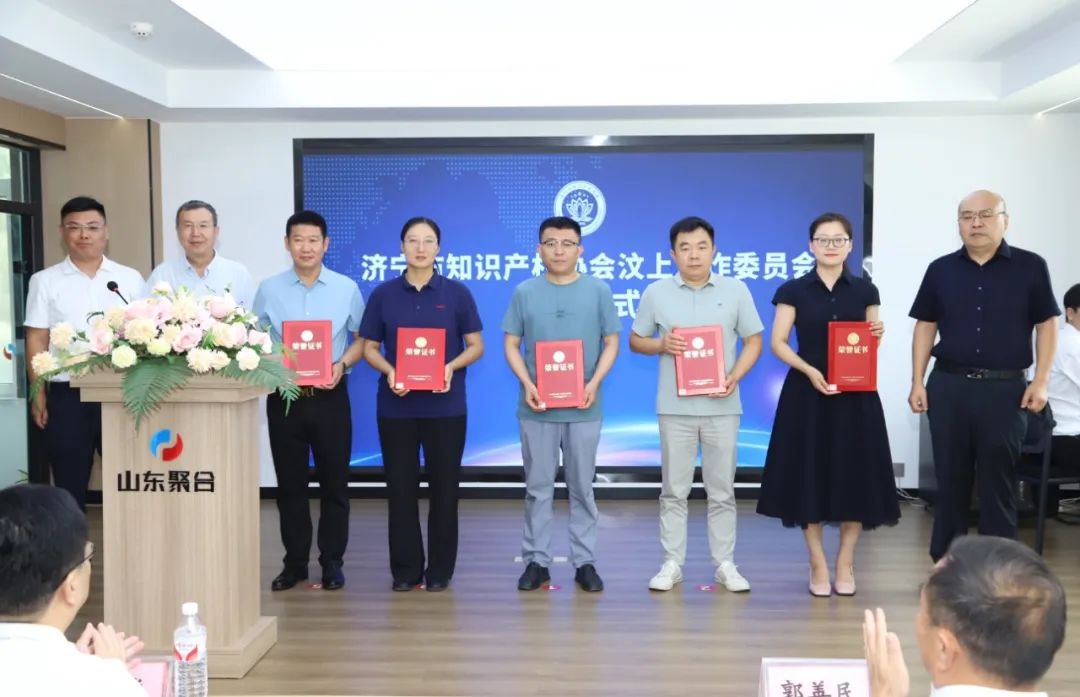 儀式上,濟寧市知識產權協會執行會長、濟寧市市場監管局四級調研員郭善民、汶上縣市場監督管理局局長趙華、濟寧市名優品牌管理中心主任、濟寧市知識產權協會秘書長周長學、汶上縣市場監督管理局二級主辦王建共同為濟寧市知識產權協會汶上工作委員會揭牌并向汶上工作委員會負責人頒發任命書,向部分會員代表頒發證書。